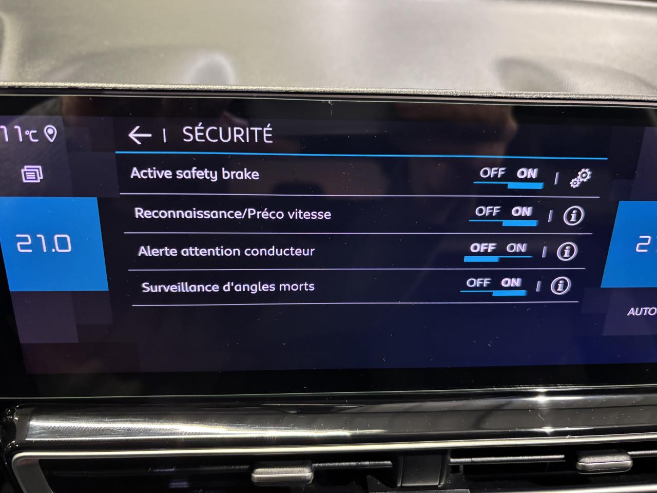3 prises USB3 sièges arrière indépendants, coulissants, inclinables et escamotablesAérateurs en rang 2ABS avec répartiteur électronique de freinage (REF) et aide au freinage d'urgence (AFU)Accès et démarrage mains-libresAccoudoir central moussé à ouverture papillon et réfrigéréAide au démarrage en côteAide au stationnement arrièreAide au stationnement avantAirbags frontaux, latéraux AV, rideauxAllumage automatique des projecteursAllumage des feux de détresse en cas de forte décélérationAmbiance intérieure Wild BlackBoitiers de rétroviseurs extérieurs noir brillantCalandre Noir Brillant avec chevrons noir brillant et entourage ChromeCaméra de recul avec Top Rear VisionClignotants avant à LEDClignotants impulsionnelsClimatisation automatique bi-zoneCombiné numérique 12,3" personnalisableCondamnation centralisée avec plipContours des vitres latérales chromésContrôle dynamique de stabilité (ESP)Détection de sous-gonflage des pneumatiquesDirection à assistance électriqueEclairage d'accueil et d'accompagnementEclairage d'accueil sur rétroviseurs extérieursElargisseurs d'ailes et bas de caisse noir matEssuie-vitre avant avec système de lavage 'Magic Wash'Feux arrière 3D à LEDFeux diurnes à LEDFrein de stationnement électrique automatiqueInsert de planche de bord Noir structuréJantes alliage 18'' PULSAR Diamantées bi-ton (225/55R18) Pneumatiques Classe AKit de dépannage provisoire de pneumatiquesKit mains libres BluetoothLève vitres électriques avant et arrière impulsionnelsMontant central extérieur noir brillantMy Citroën Drive avec écran tactile 10""My Citroën PlayPack SafetyPare-chocs arrière avec double canule chroméePeinture opaque Blanc BanquisePersonnalisation extérieure C-SeriesPlafonnier avant et lecteur de cartesPlancher de coffre modulable 2 positionsPoignées de portes extérieures couleur caissePrise 12 volts sur console centrale et dans le coffreProjecteurs antibrouillard avec éclairage statique d'intersectionProjecteurs avant LEDRétroviseur intérieur électrochromeRétroviseurs extérieurs électriques et dégivrantsRétroviseurs extérieurs rabattables électriquementSécurité enfants manuelleSabot de protection AluminiumSiège conducteur avec réglage lombaireSièges Advanced ComfortSièges conducteur et passager réglables en hauteurSuspension Citroën Advanced ComfortSystème de contrôle des angles mortsSystème de fixation ISOFIX aux places latérales arrière et passager avantTémoin de non-bouclage des ceintures avant et arrièreTapis de coffreVitres de custodes arrière surteintéesVitres latérales et lunette arrière surteintéesVolant avec commandes intégréesVolant croûte de cuirVolant réglable en hauteur et en profondeur