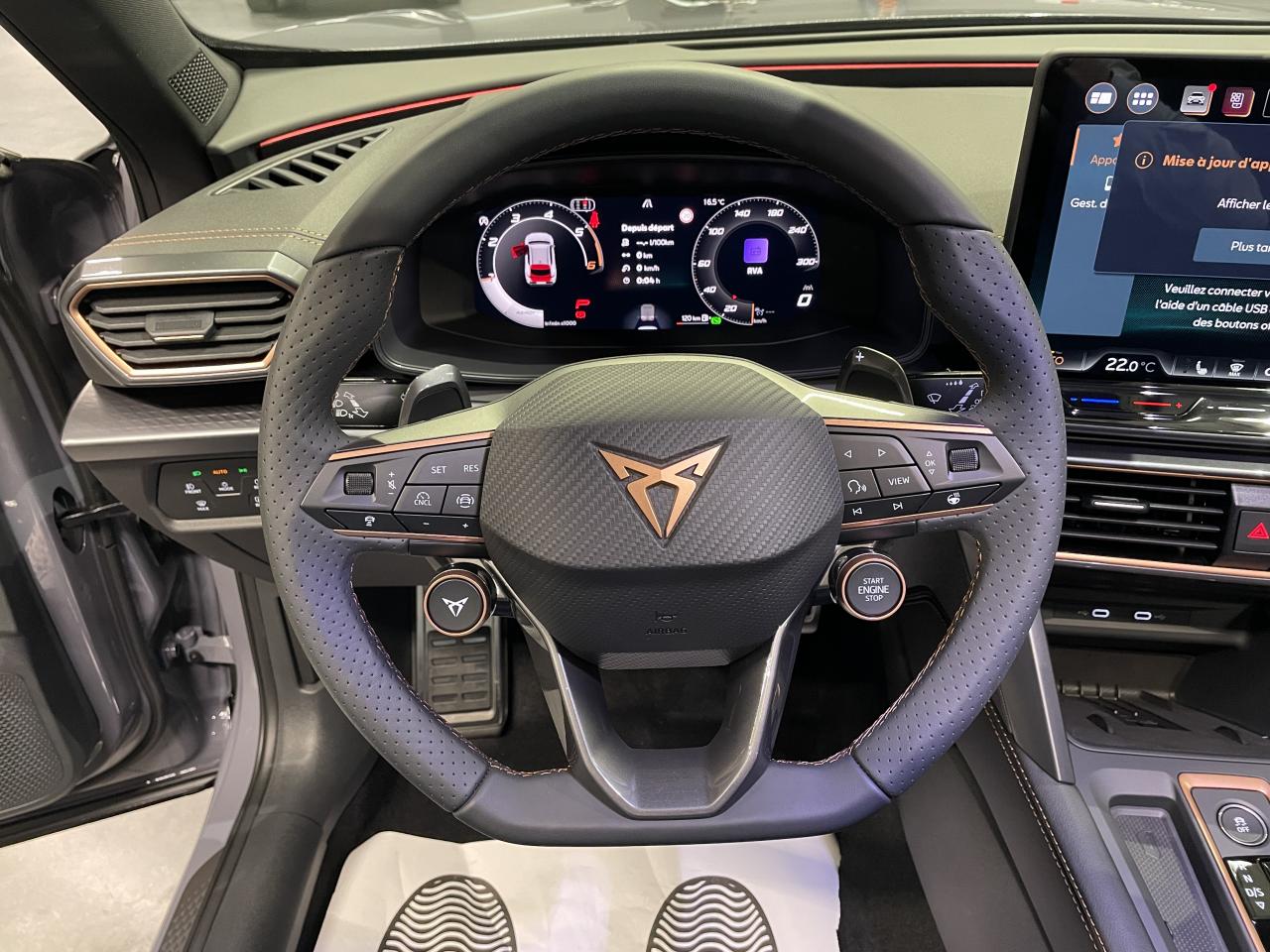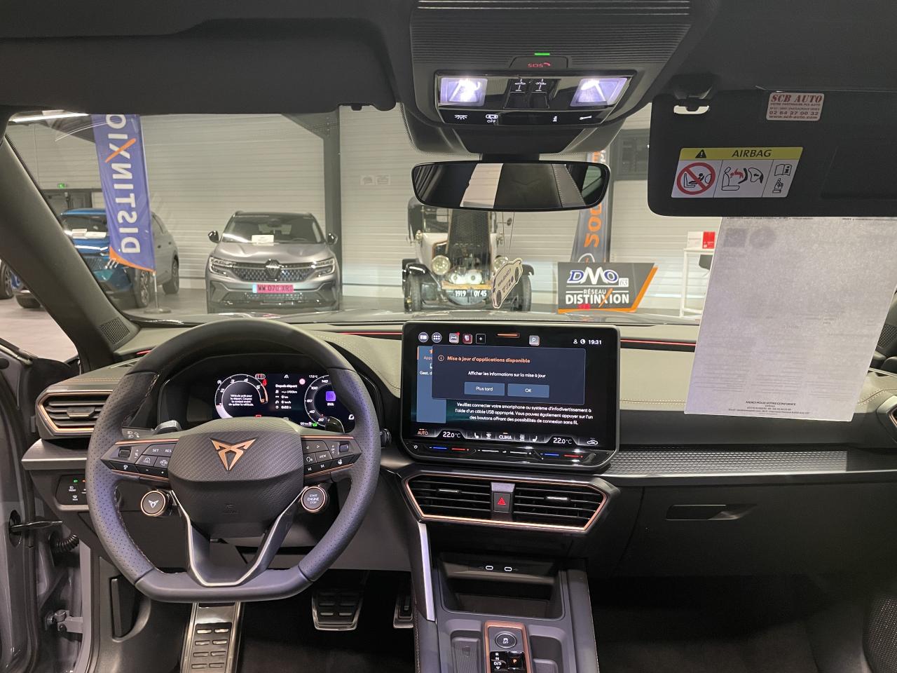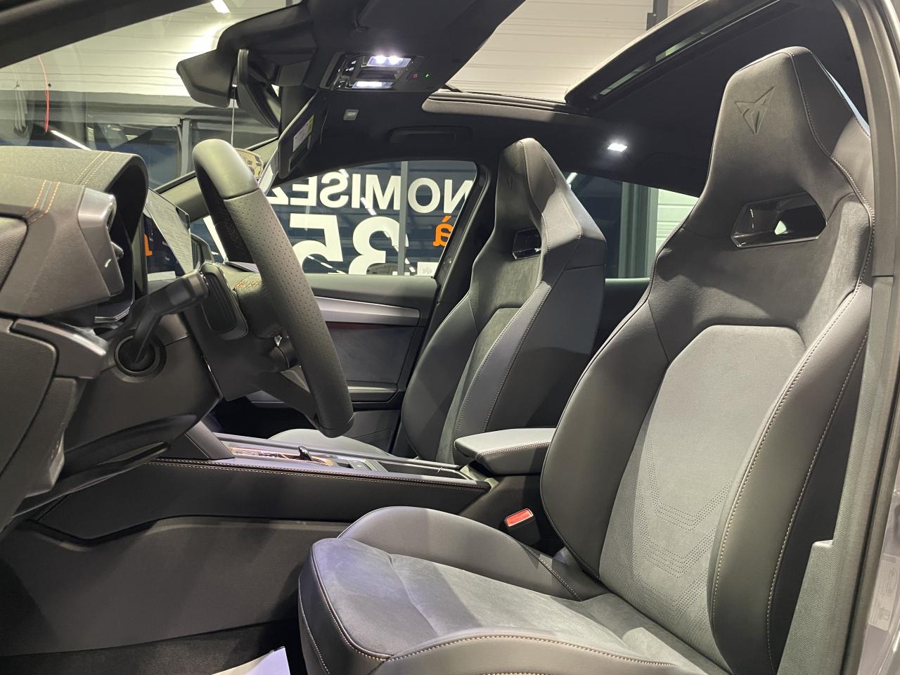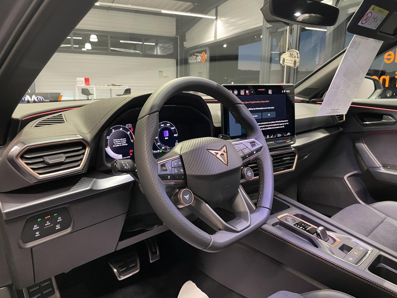 6 haut-parleursAccès et démarrage mains-libresAccoudoir central réglable en profondeur et en hauteurAide au stationnement avant/arrièreAirbag central avantAirbags latéraux et rideauxAppel d'urgence - EcallAssistant d'intersection (Cross Traffic Assist)Bandeau arrière "Infinite Light" intégrant le logo CUPRA lumineux, avec signature lumineuse Tri-LED et cérémonie de bienvenueBanquette arrière rabattable 2/3 - 1/3 avec trappe à skisBas de caisses couleur contrastante Noir ObsidienBluetoothCaméra de reculCiel de pavillon noirClimatisation automatique Climatronic tri-zoneConnectivité 4x USB-CConnectivity Box avec chargeur à inductionContrôle vocalCoque de rétroviseurs peinte dans le ton contrasté noir obsidienneCUPRA BoxCUPRA ConnectDesign Intérieur PureDétecteur de pluie et allumage automatique des projecteursDiffuseur couleur contrastante Noir ObsidienDigital Cockpit : combiné d’instruments digital haute résolution couleur de 10,25"Direction dynamiqueDouble-sortie d'échappement noire styliséeEclairage d'ambiance intérieur intelligentEclairage de bienvenue avec projection du logo CUPRA au solElargisseurs d'ailes couleur contrastante Noir ObsidienEntrées d'air AV couleur contrastante Noir ObsidienFixations Isofix et Toptether aux sièges arrièreFront Assist avec détection des piétons et des cyclistesFull Link sans fil (Android Auto + Apple CarPlay)Hayon électrique + fonction Virtual PedalKit de sécurité CupraLampe de lecture avant et arrière à LEDLane Assistant : assistant de maintien dans la voieLight Assist : Activation ou désactivation automatique des feux de routePack intérieur Dark Alu avec inserts cuivrésPalettes de changement de rapportsPare-soleil avant avec miroirs de courtoisie éclairésProjecteurs anti-brouillard triangulaires avec éclairage d'intersection et éclairage d'accompagnementProjecteurs Full LED avec signature Tri-LEDRadio Numérique DABRails de toit et entourage de vitres Noir PianoRégulateur de vitesse adaptatifRétroviseur intérieur électrochromeSeuils de porte CUPRA rétro-éclairésSign Assist (reconnaissance des panneaux de signalisation)Système d'info-divertissement avec écran tactile HD 12,9" et touches de commandes tactiles rétro-éclairéesSystème de détection de la somnolence du conducteurVitres arrière surteintéesVolant Supersports Cupra avec boutons satellitesVolant Supersports CUPRA chauffant en cuir