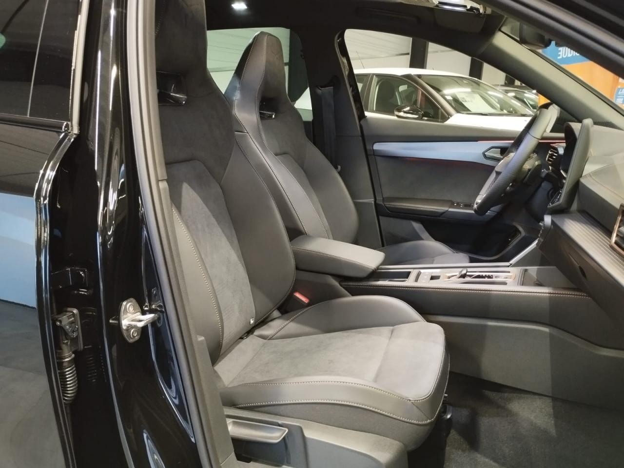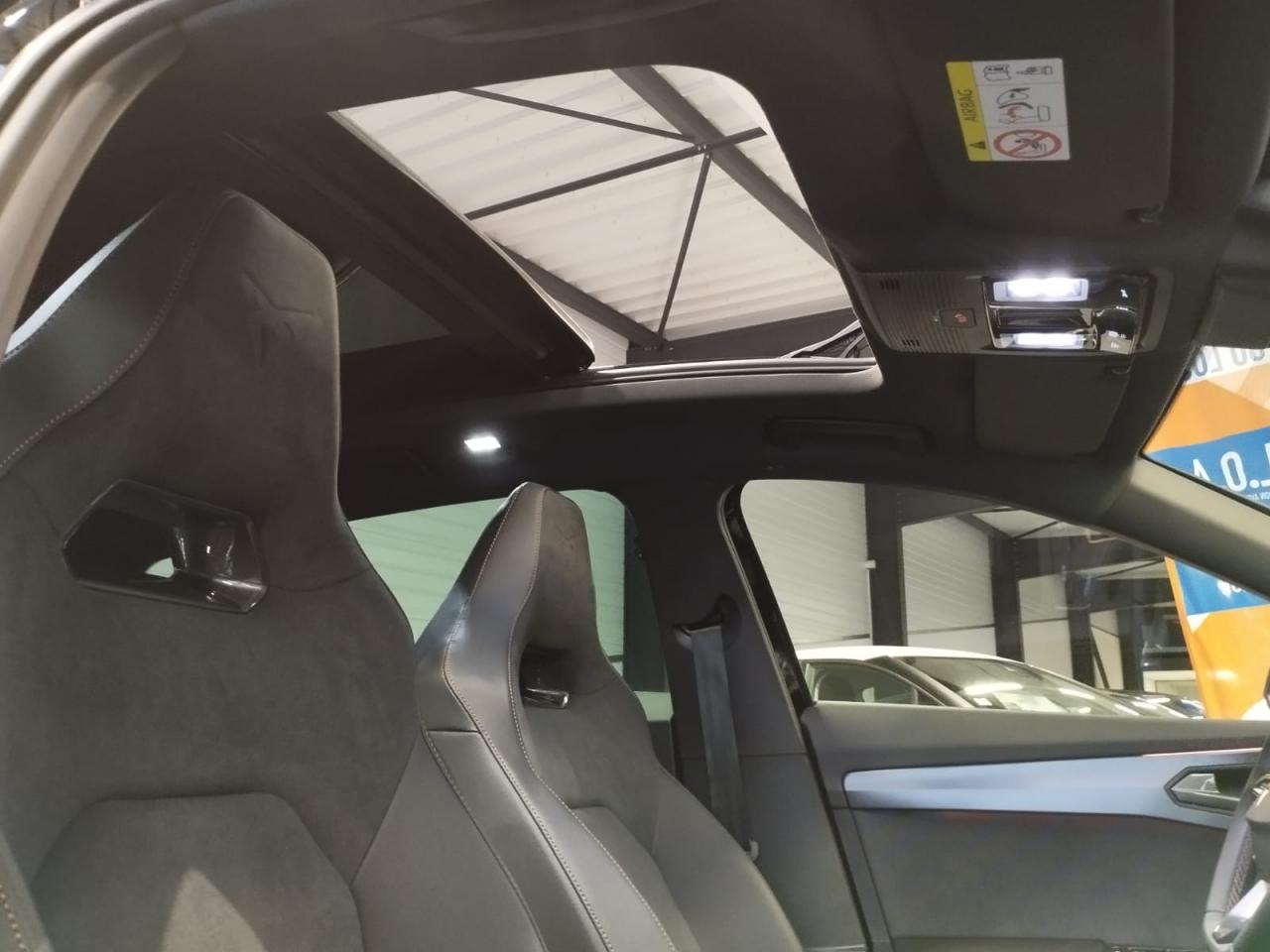 6 haut-parleursAccès et démarrage mains-libresAccoudoir central réglable en profondeur et en hauteurAide au stationnement avant/arrièreAirbag central avantAirbags latéraux et rideauxAppel d'urgence - EcallAssistant d'intersection (Cross Traffic Assist)Bandeau arrière "Infinite Light" intégrant le logo CUPRA lumineux, avec signature lumineuse Tri-LED et cérémonie de bienvenueBanquette arrière rabattable 2/3 - 1/3 avec trappe à skisBas de caisses couleur contrastante Noir ObsidienBluetoothCaméra de reculCiel de pavillon noirClimatisation automatique Climatronic tri-zoneConnectivité 4x USB-CConnectivity Box avec chargeur à inductionContrôle vocalCoque de rétroviseurs peinte dans le ton contrasté noir obsidienneCUPRA BoxCUPRA ConnectDesign Intérieur PureDétecteur de pluie et allumage automatique des projecteursDiffuseur couleur contrastante Noir ObsidienDigital Cockpit : combiné d’instruments digital haute résolution couleur de 10,25"Direction dynamiqueDouble-sortie d'échappement noire styliséeEclairage d'ambiance intérieur intelligentEclairage de bienvenue avec projection du logo CUPRA au solElargisseurs d'ailes couleur contrastante Noir ObsidienEntrées d'air AV couleur contrastante Noir ObsidienFixations Isofix et Toptether aux sièges arrièreFront Assist avec détection des piétons et des cyclistesFull Link sans fil (Android Auto + Apple CarPlay)Hayon électrique + fonction Virtual PedalKit de sécurité CupraLampe de lecture avant et arrière à LEDLane Assistant : assistant de maintien dans la voieLight Assist : Activation ou désactivation automatique des feux de routePack intérieur Dark Alu avec inserts cuivrésPalettes de changement de rapportsPare-soleil avant avec miroirs de courtoisie éclairésProjecteurs anti-brouillard triangulaires avec éclairage d'intersection et éclairage d'accompagnementProjecteurs Full LED avec signature Tri-LEDRadio Numérique DABRails de toit et entourage de vitres Noir PianoRégulateur de vitesse adaptatifRétroviseur intérieur électrochromeSeuils de porte CUPRA rétro-éclairésSign Assist (reconnaissance des panneaux de signalisation)Système d'info-divertissement avec écran tactile HD 12,9" et touches de commandes tactiles rétro-éclairéesSystème de détection de la somnolence du conducteurTapis de sol CUPRA coordonnés à la sellerieVitres arrière surteintéesVolant Supersports Cupra avec boutons satellitesVolant Supersports CUPRA chauffant en cuir