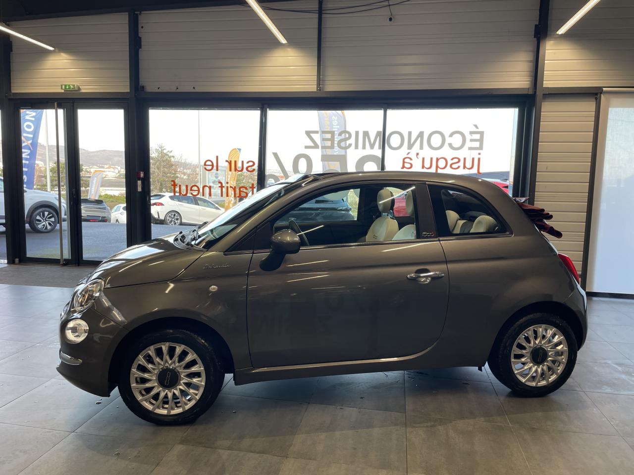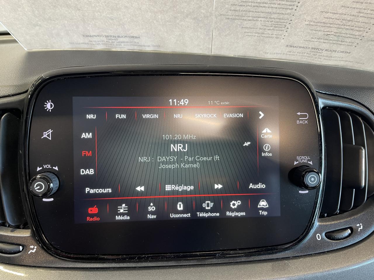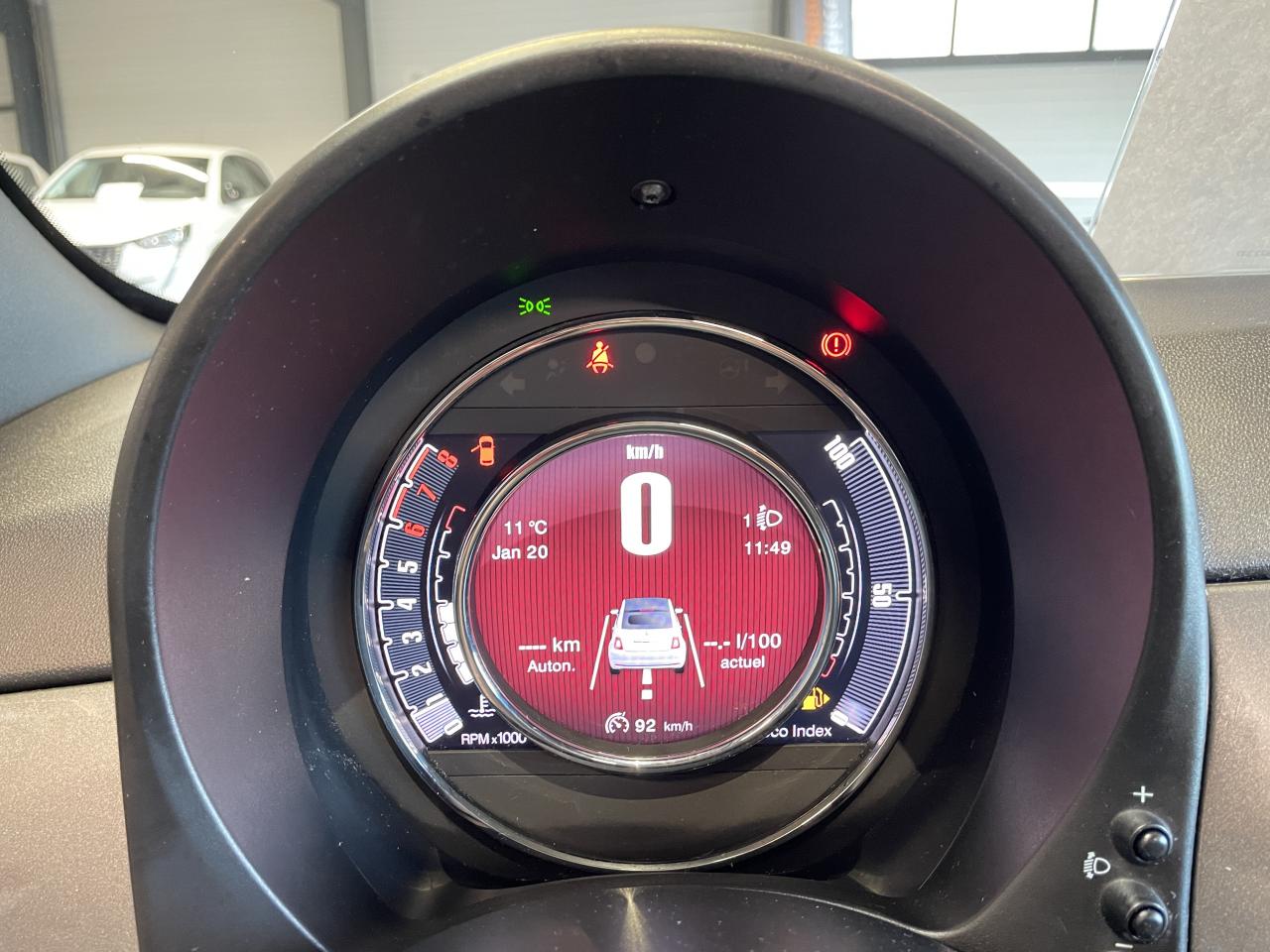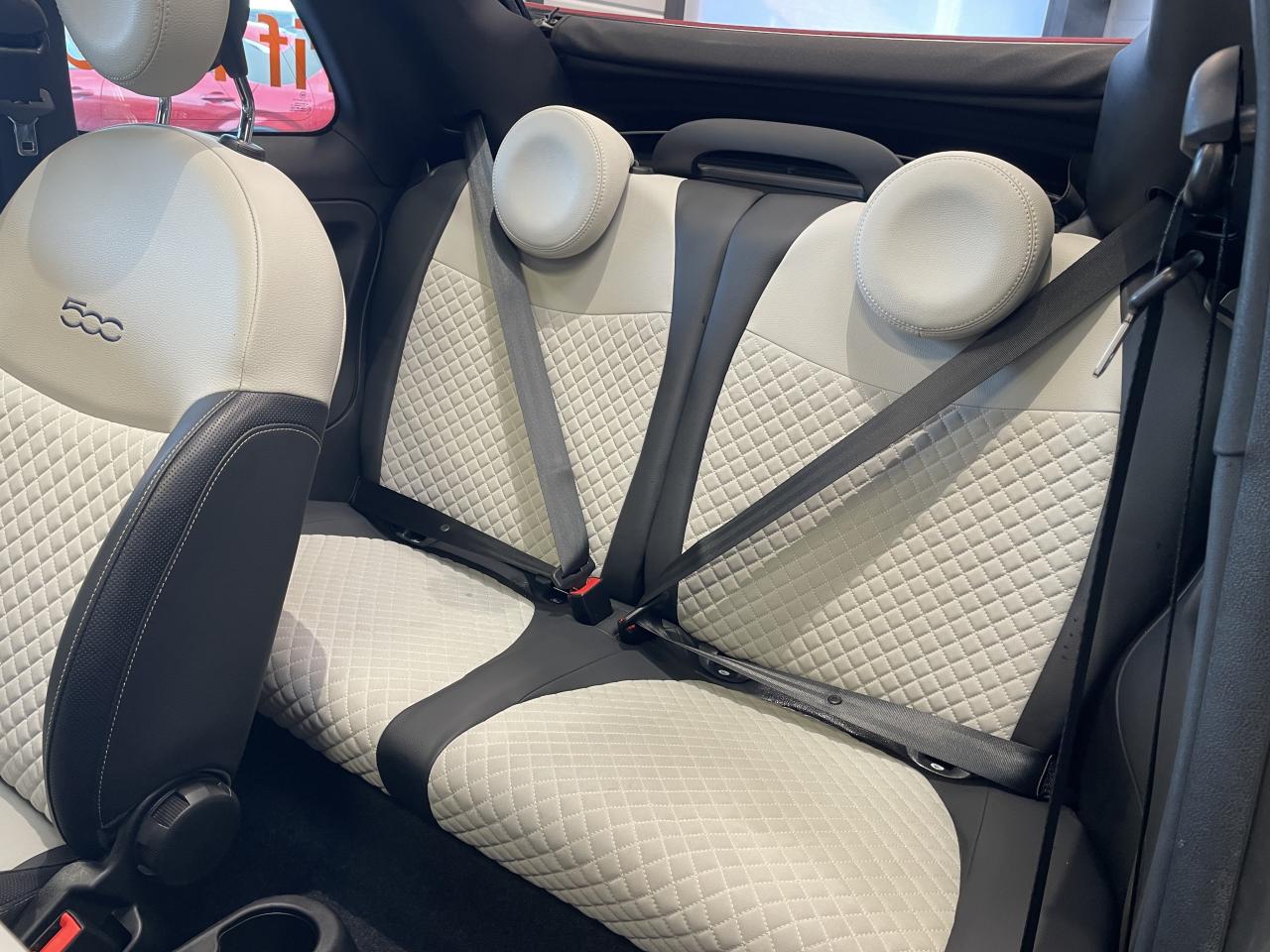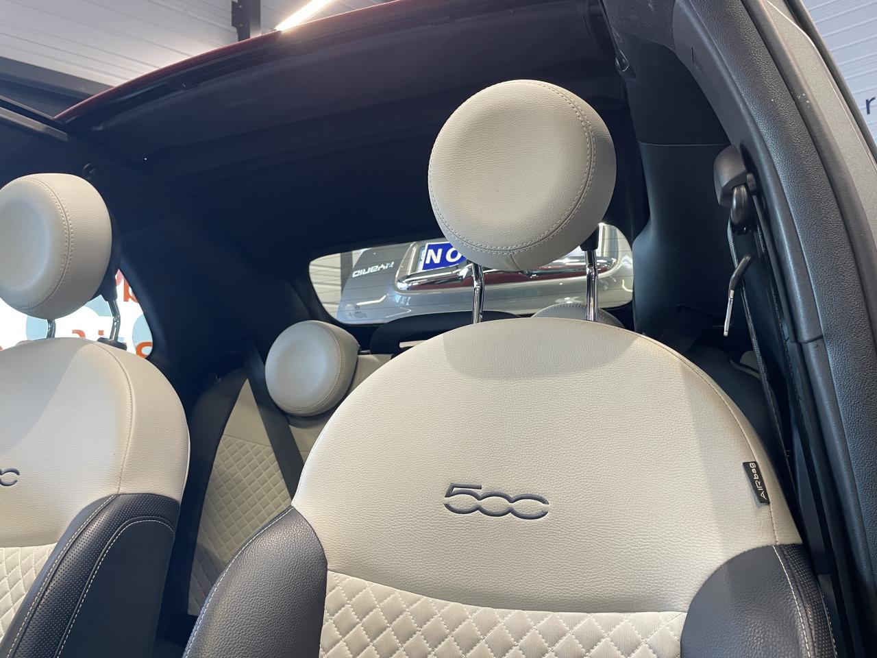ABS – antiblocage des roues avec répartiteur de freinage EBDAirbag Fiat de genouxAirbags fiat conducteur et passagerAirbags Fiat de toitAirbags Fiat latéraux avantAppuie-tête à l'avant, réglables en hauteurAssistance au freinage d'urgenceAttaches IsofixBaguette de vitres latérales chroméesBaguettes latérales couleur carrosserie (avec logo 500)Banquette arrière fractionnable 50/50Banquette arrière rabattable avec appui-têteCapote à ouverture éléctrique et lunette arrière en verre à dégivrage éléctriqueCapote avec imprimé rayé exclusifClimatisation automatique avec filtre à pollenColoris BossaNova WhiteCombiné de bord à affichage numérique TFT 7''Condamnation automatique des ouvrants en roulantCondamnation centralisée à distanceCoques de rétroviseurs extérieurs chroméesDétecteur de pluie et allumage automatique des projecteursDirection assistée Dualdrive avec fonction"City"Dispositif d'éclairage ‘'Follow me home''Eclairage du coffreESP - contrôle électronique de stabilité avec “Hill Holder"Feux de jour à LEDJantes alliage de 16'' finition blancKit ChromeLame avant chromée sous logo FiatLevier de vitesses effet chroméLimiteur de vitesseLiner rouge/blanc/rouge sur le pourtourLogo "Dolcevita" sur le hayonMoulure chromée sur capotMoulures latérales avec logo 500Pare-chocs couleur carrosseriePlanche de bord en bois d'inspiration nautique ornée d'un liseréPoignées de porte chroméesPoignées de porte intérieures chroméesPommeau de levier de vitesses en cuirProjecteurs antibrouillardRadar de reculRégulateur de vitesseRétroviseurs extérieurs à réglage électrique et sonde de température extérieureRétroviseurs extérieurs électriques et dégivrantsSellerie exclusiveSeuils de portesSiège conducteur réglable en hauteurStart/Stop : Système d'extinction/allumage du moteur lors de courts arrêtsSystème Link : intégration Apple CarPlay et compatibilité Android AutoSystème Uconnect LINK 7 avec DAB et navigationTapis de sol à bords blancsVitres avant électriquesVitres latérales et lunette arrière surteintéesVolant éco-cuir avec commandes de l'autoradioVolant réglable en hauteur