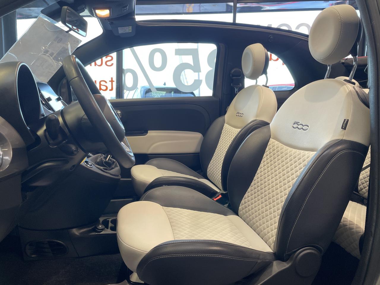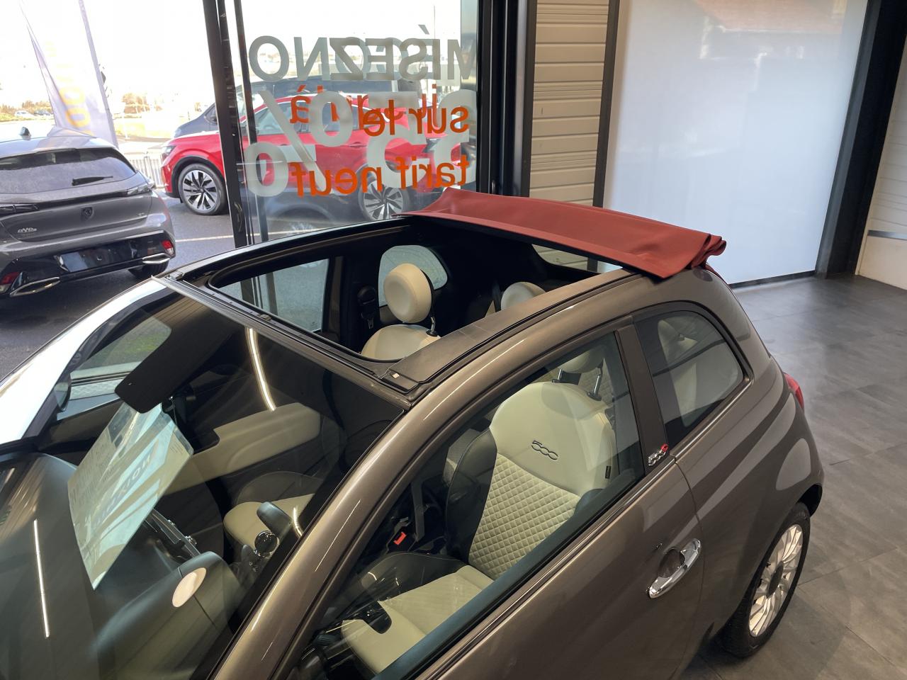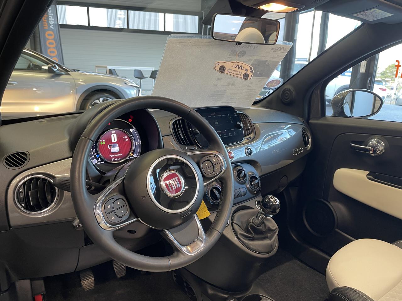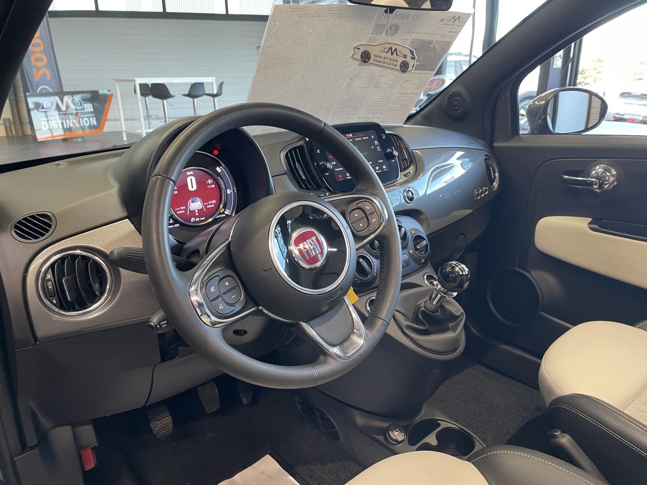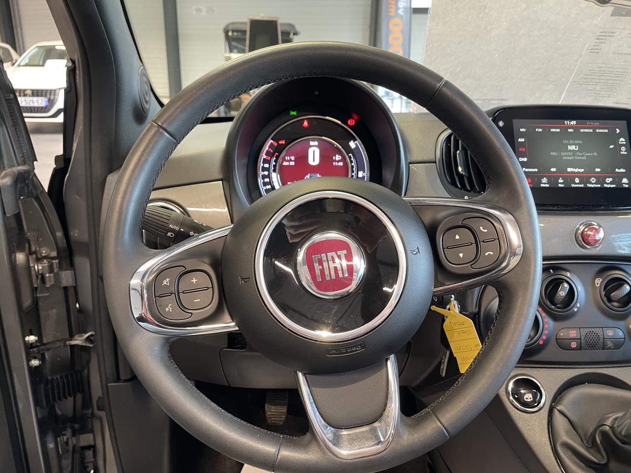 ABS – antiblocage des roues avec répartiteur de freinage EBDAirbag Fiat de genouxAirbags fiat conducteur et passagerAirbags Fiat de toitAirbags Fiat latéraux avantAppuie-tête à l'avant, réglables en hauteurAssistance au freinage d'urgenceAttaches IsofixBaguette de vitres latérales chroméesBaguettes latérales couleur carrosserie (avec logo 500)Banquette arrière fractionnable 50/50Banquette arrière rabattable avec appui-têteCapote à ouverture éléctrique et lunette arrière en verre à dégivrage éléctriqueCapote avec imprimé rayé exclusifClimatisation automatique avec filtre à pollenColoris BossaNova WhiteCombiné de bord à affichage numérique TFT 7''Condamnation automatique des ouvrants en roulantCondamnation centralisée à distanceCoques de rétroviseurs extérieurs chroméesDétecteur de pluie et allumage automatique des projecteursDirection assistée Dualdrive avec fonction"City"Dispositif d'éclairage ‘'Follow me home''Eclairage du coffreESP - contrôle électronique de stabilité avec “Hill Holder"Feux de jour à LEDJantes alliage de 16'' finition blancKit ChromeLame avant chromée sous logo FiatLevier de vitesses effet chroméLimiteur de vitesseLiner rouge/blanc/rouge sur le pourtourLogo "Dolcevita" sur le hayonMoulure chromée sur capotMoulures latérales avec logo 500Pare-chocs couleur carrosseriePlanche de bord en bois d'inspiration nautique ornée d'un liseréPoignées de porte chroméesPoignées de porte intérieures chroméesPommeau de levier de vitesses en cuirProjecteurs antibrouillardRadar de reculRégulateur de vitesseRétroviseurs extérieurs à réglage électrique et sonde de température extérieureRétroviseurs extérieurs électriques et dégivrantsSellerie exclusiveSeuils de portesSiège conducteur réglable en hauteurStart/Stop : Système d'extinction/allumage du moteur lors de courts arrêtsSystème Link : intégration Apple CarPlay et compatibilité Android AutoSystème Uconnect LINK 7 avec DAB et navigationTapis de sol à bords blancsVitres avant électriquesVitres latérales et lunette arrière surteintéesVolant éco-cuir avec commandes de l'autoradioVolant réglable en hauteur